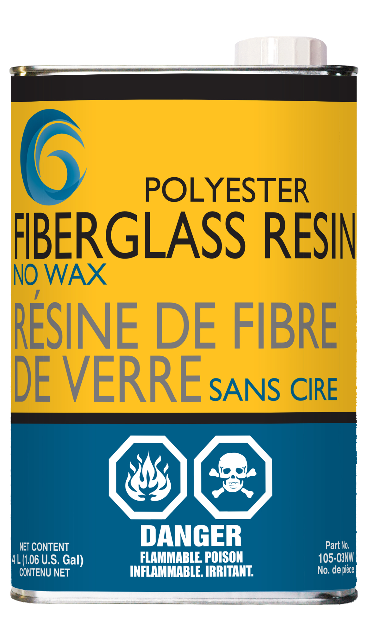 Fiberglass Resin Polyester No Wax – 3.78 L can part number 105-03NW